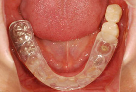 実際の手術では、これをお口にはめ込み、穴が開いている部分にインプラント体を埋入するだけで、安全なオペが可能になります。当院では、必要に応じて、ガイデットサージェリーシステムを適用しております。